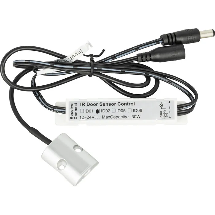 The surface mount IR door sensor switch, with a 1-1/2" detection area, allows lights to remain on until the door or drawer is closed.High quality IR sensor eye works regardless of door finish