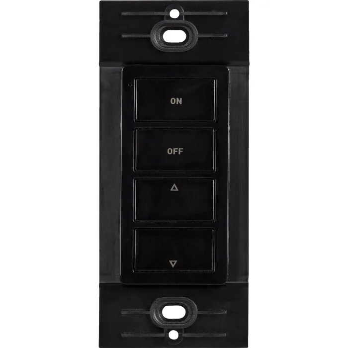 Wireless Uno 1 Zone wall dimmer. Used with the wireless receiver, WAV Smart Receiver/Power Supply Combo, WAV Smart Receiver, or 24V Smart Power Supply to wirelessly control and dim LED Lighting.Control LED lighting wirelesslyAttaches to mounting plate with a simple magnet for easy, yet mobile controlFits perfectly into a standard Decora style switch plate, not included, without the need for cutting into sheet rockBattery is only consumed while buttons are pressed, meaning years of battery lifeFull-range brightness and on/off controlSingle-touch pairing with wireless receiver for easy installation