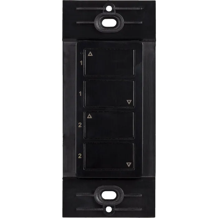Wireless Duo 2 Zone wall dimmer. Used with the wireless receiver, WAV Smart Receiver/Power Supply Combo, WAV Smart Receiver, or 24V Smart Power Supply to wirelessly control and dim LED Lighting.Control LED lighting wirelesslyAttaches to mounting plate with a simple magnet for easy, yet mobile controlFits perfectly into a standard Decora style switch plate, not included, without the need for cutting into sheet rockBattery is only consumed while buttons are pressed, meaning years of battery lifeFull-range brightness and on/off controlSingle-touch pairing with wireless receiver for easy installationControl up to two zones of lighting from one wireless controller