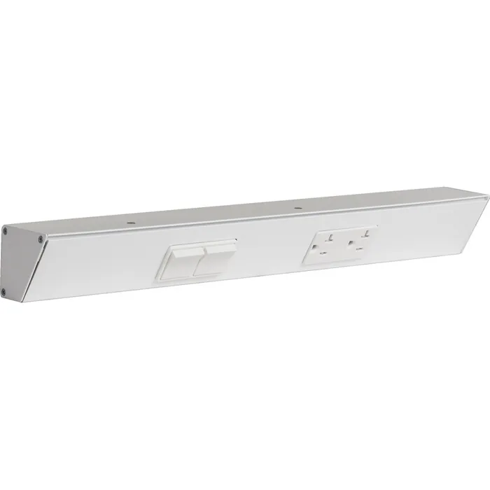 The patented TR Switch Angle Power Strip mounts under cabinets and is an ideal alternative to standard outlets that are cut into tile, glass, wood panels, metal and other solid surfaces. The fixture is easily hidden while the angle offers easy access to receptacles. Fixture comes with one dual 15 amp single pole switch. Use under kitchen cabinets, vertically along the sides of a bathroom mirror, on the top of an office desk, in the shop, craft room and home entertainment center. Tamper resistant receptacles. Mounting hardware included. Meets 2008 NEC. Requires installation by licensed electrician.The switch does not affect the receptacles on the TRS fixture, so power is available even when the switch is offBeautiful designer finish to blend with décorLow profile at only 2 1/8" for hidden powerSwitching options are endless, control lights, appliances, and moreEasy and attractive installation with a single Romex wire
