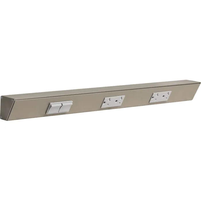 Task Lighting 24 inch TR Switch Series Angle Power Strip, Left Switches, Satin Nickel Finish, Grey Switches and Receptacles, 196734000840, TRS24-3G-SN-LS