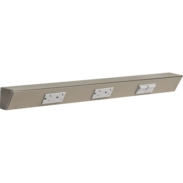 The patented TR Switch Angle Power Strip mounts under cabinets and is an ideal alternative to standard outlets that are cut into tile, glass, wood panels, metal and other solid surfaces. The fixture is easily hidden while the angle offers easy access to receptacles. Fixture comes with one dual 15 amp single pole switch. Use under kitchen cabinets, vertically along the sides of a bathroom mirror, on the top of an office desk, in the shop, craft room and home entertainment center. Tamper resistant receptacles. Mounting hardware included. Meets 2008 NEC. Requires installation by licensed electrician.The switch does not affect the receptacles on the TRS fixture, so power is available even when the switch is offBeautiful designer finish to blend with décorLow profile at only 2 1/8" for hidden powerSwitching options are endless, control lights, appliances, and moreEasy and attractive installation with a single Romex wire
