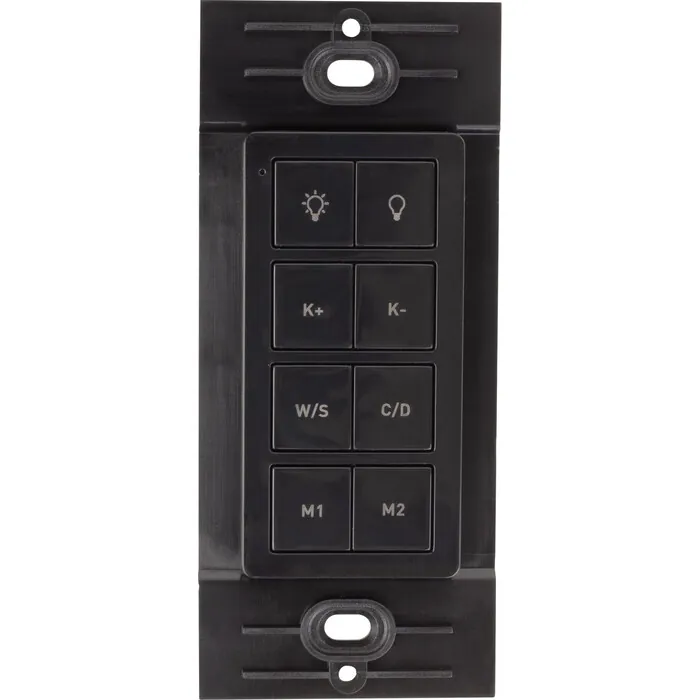 Wireless radio frequency controller for controlling tunable white lighting. Tune to the temperature of choice between 2700K and 5000K, set the brightness as desired, or save temperatures to memory.UL Recognized to keep inspectors satisfiedControl tunable white lighting wirelesslyAttaches to mounting plate with a simple magnet for easy, yet mobile controlFits perfectly into a standard Decora style switch plate, not included, without the need for cutting into sheet rockBattery is only consumed while buttons are pressed, meaning years of battery lifeFull-range brightness and Kelvin temperature controlSingle-touch pairing with wireless receiver for easy installation