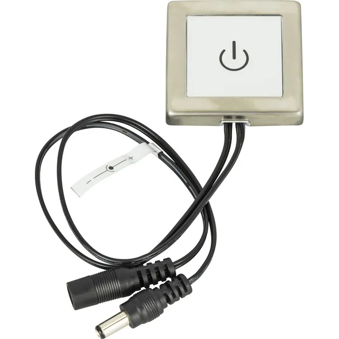 LED touch dimmer switch mounts with adhesive pads and screws, included. Touch to switch on/off, hold to dim up and down.