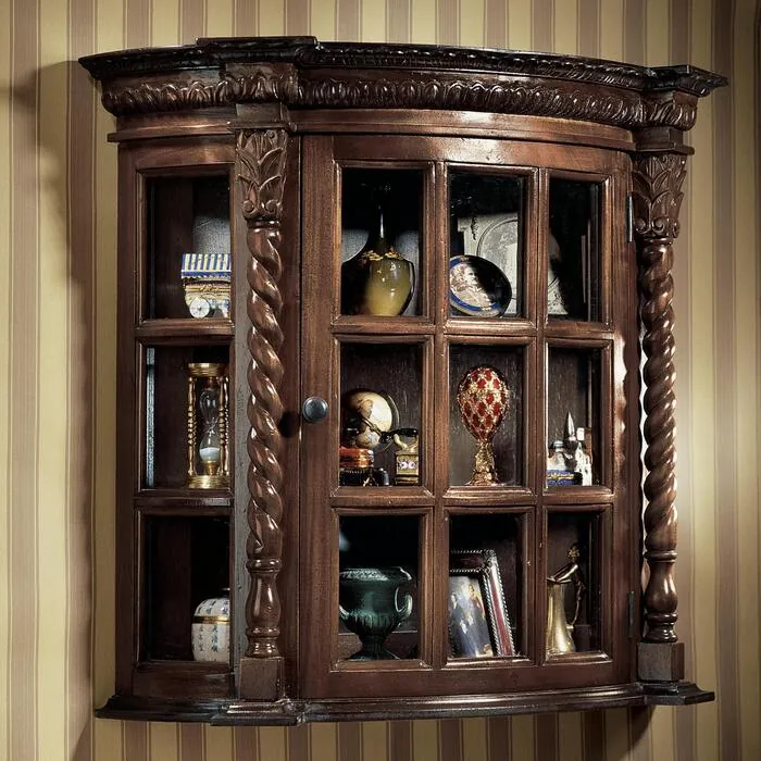 PERFECT FOR COLLECTIBLES - With glass on three sides, add your finest heirloom figurines, statues, Romanov-Style eggs, and prized possessions to our glass curio cabinets.WALL MOUNT OR FREESTANDING - Our wooden wall curio cabinets with hanging hardware can also stand freely as a tabletop curio cabinetHIGH-QUALITY - Hand-crafted using hardwood shelves and glass panels to shed maximum light on your collection.DESIGN TOSCANO CURIO CABINETS - Exclusive to the Design Toscano brand, this curio cabinet provides unobstructed viewing from three sidesOur glass curio cabinet shelf measures 25"Wx12½"Dx27½"H. 35 lbs. making it the perfect display cabinet!