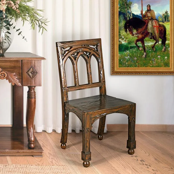 We can only imagine the ancient church dignitaries who once sat in the original of this replica monastery accent chair. Whether you choose a pair flanking a console or a fireplace, you're likely to be enchanted by the rustic Gothic feel of the wood saddle seat and the trefoil and arched window design gracing the stately back. This Design Toscano exclusive is solidly constructed of wood with a warm-hued finish. 19"Wx19"Dx36½"H. 24 lbs.