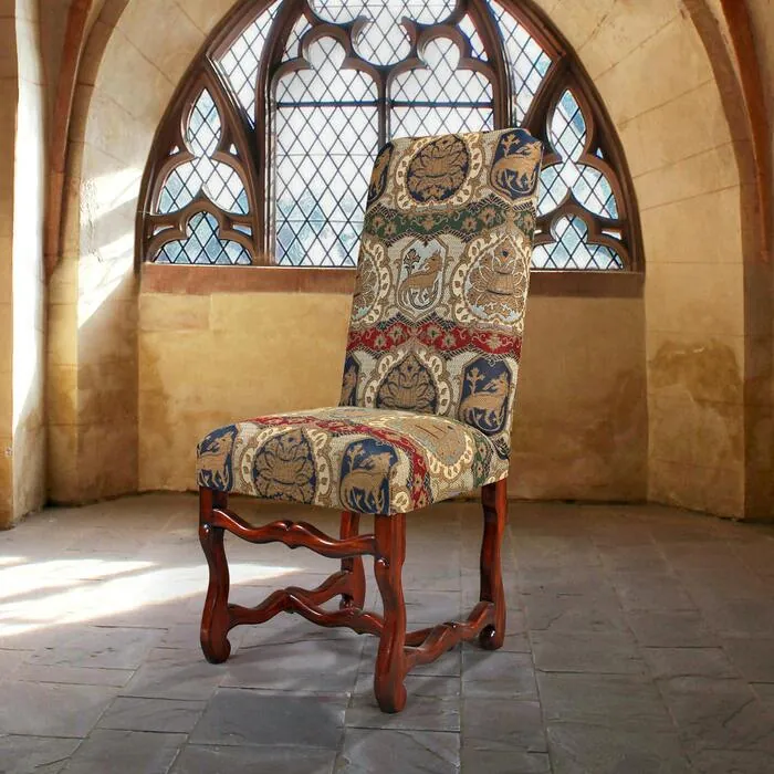 Throughout the French countryside, a chair like this 17th-century classic has filled exquisite dining halls of grand chateaux. We are thrilled that our Design Toscano master craftsmen have created this comfy replica with the distinctive authenticity of period furniture to blend with your other antique collectibles. A frame of solid mahogany with a rich dark cherry finish showcases a multi-colored coat of arms jacquard tapestry, upholstered on front and back, give it all the authenticity of a fine period antique. This exclusive Design Toscano version is brass-tacked for historic style and grandeur through seasons to come. 18½"Wx18½"Dx43½"H. 17 lbs.