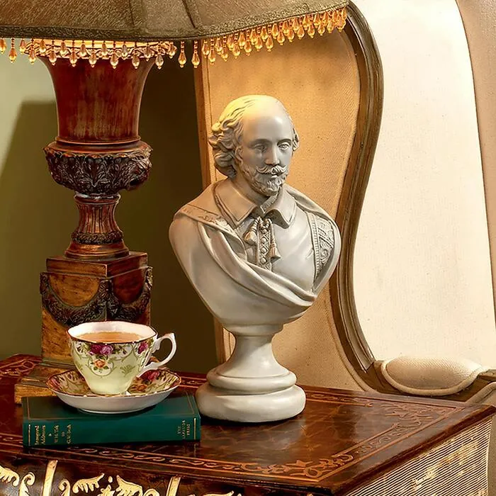 If, like us, you think "The Bard" deserves his own pedestal, you'll quickly find a place on bookshelf, mantel, or credenza for his likeness. Faithfully sculpted, then cast in quality designer resin to capture each detail and highlighted with an antique stone finish, this stately bust of the famed Elizabethan playwright will herald your love of all things literary. 7½"Wx5½"Dx12"H.3 lbs.