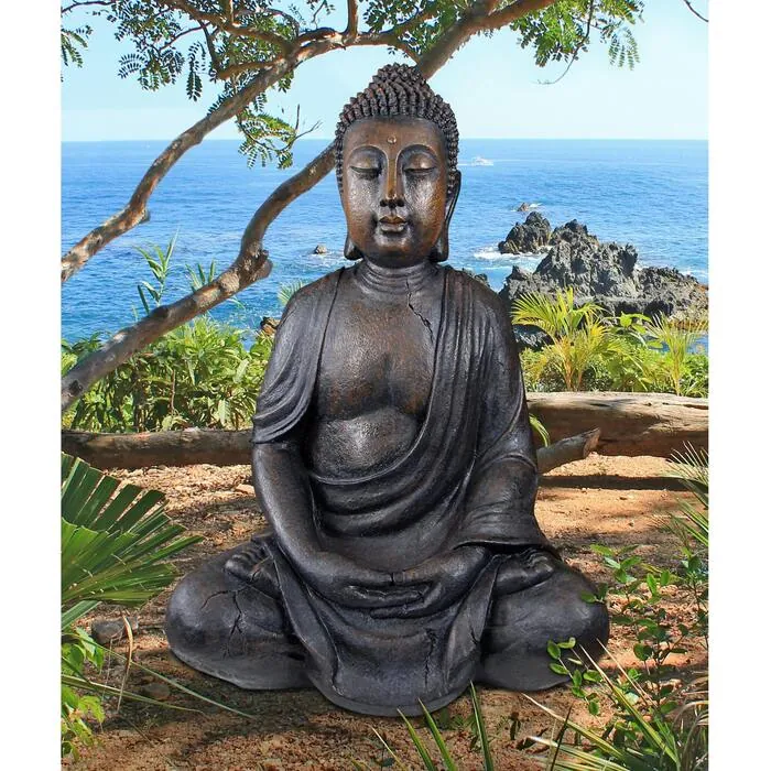 Sculpted with the tranquil majesty of those in ancient monasteries, this three-dimensional work of decorative Asian art creates a meditative place for home or garden. Our Design Toscano-exclusive quality designer resin Asian statue with faux, dark stone finish captures the peaceful Oriental Buddhist nature and lends its quiet countenance to home or garden sanctuary. Another breathtaking Asian garden statue from Toscano! 27"Wx19"Dx40"H. 29 lbs.