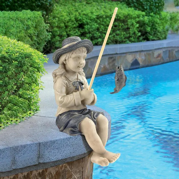 Our proper Victorian lass is constantly happy to see a beautiful brook trout rise to a fly! Whether celebrating your own fond childhood days at the water s edge or cheering the independence Victorians afforded their nature loving women anglers, you ll admire the detail of this joyous young girl statue intent on her catch. Cast in quality designer resin to capture every facet from detachable fishing pole to upturned toes, our Design Toscano-exclusive Victorian sculpture boasts a two-tone finish for home or garden use. Small: 4½"Wx11"Dx11"H.