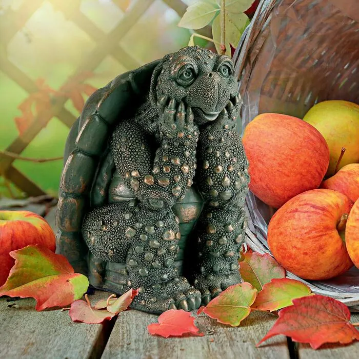 Even with the weight of the world on his back, our Thinker can still ponder a tortoise lineage that dates to the days of the dinosaurs! With a tongue-in-cheek nod to Rodin's famous Thinker statue, our turtle version by artist Sheldon is great perched near a pond or sitting wisely on a library shelf. Cast in quality designer resin and individually hand painted in verdigris bronze, this amniote tortoise statue is available only from Design Toscano! 6"Wx7"Dx7½"H. 1 lb.