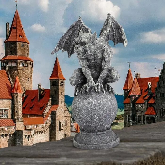 Artist Liam Manchester termed his devilish medieval monster beast with spiny wings, "bitchy, nasty and just not nice!" Perched atop a classic ball plinth, our frightening Design Toscano exclusive gargoyle statue is crafted in quality designer resin with a Gothic faux gray stone finish to showcase this collectible guardian sculpture to his full blown horror! 9"Wx7"Dx14½"H. 3 lbs.