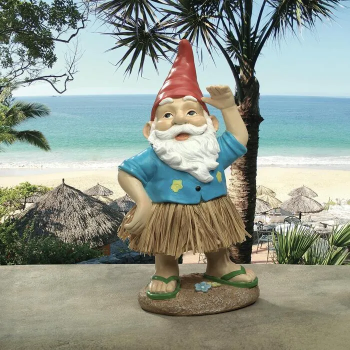 Hawaiian Hank is all "gnome on the top and party on the bottom!" Wearing a traditional hula grass skirt, this Polynesian-style celebrant is ready to party for an instant luau anytime you're up for a poolside or patio Margarita. Sculpted with traditional red hat, burly beard and elf friendly smile, our collectible gnome is cast in quality designer resin and hand painted exclusively for Design Toscano. Mix a little Germanic dwarf folklore with a lot of island charm and you'll be ready for an endless tropical vacation in a buffet room, patio or poolside! 6½"Wx5"Dx12½"H. 2 lbs.