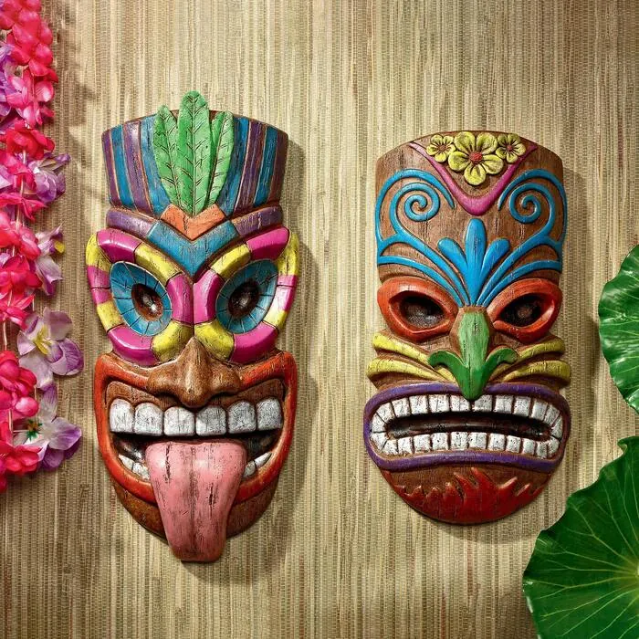 The art of modern Polynesian pop culture is alive and well in these tiki wall plaques that dish up true island style! Hoaloha, meaning "friend," gives a wide Hawaiian smile while Maika 'l' ole, meaning "bad," sticks out his tongue to show he's true tiki trouble. Our over foot tall, hand-painted, designer resin plaques add an instant, Design Toscano-exclusive island retro feel to home, garden wall or poolside terrace. Mahalo! Hoaloha and Maika 'l' ole. Maika 'l' ole: 7½"Wx2½"Dx16"H. 2 lbs. Hoaloha: 7"Wx2½"Dx13"H. 2 lbs.
