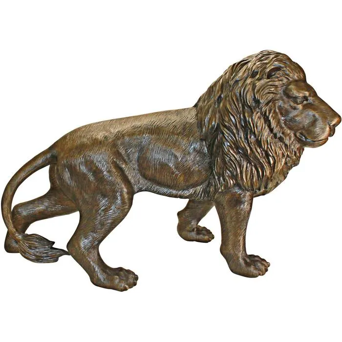 Our grand-looking Guardian Lion Cast Bronze Garden Statue: Right Foot Forward adds timeless majesty to your entry way or garden expanse. Expertly hand-crafted one-piece-at-a-time in the traditional lost wax method from heirloom quality bronze with an antiqued sepia patina. Finely-detailed, each Guardian Lion Cast Bronze Garden Statue is a work of art that+óGe¼Gäós viewable from every angle. Each measures about 4-feet long, tip to tail. Made from Cast Bronze. Design Toscano features a Special Order service; this item will be custom made for you. Please contact Customer Service so we can arrange delivery service for you. Left: 48"Wx15"Dx31½"H. 83 lbs. Right: 47½"Wx12½"Dx31½"H. 86 lbs.