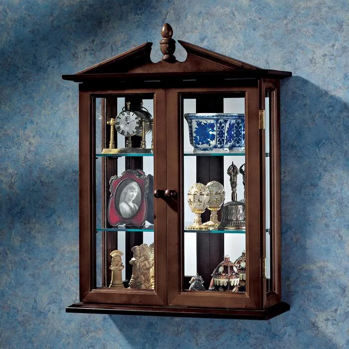 PERFECT FOR COLLECTIBLES - With glass on three sides, add your finest heirloom figurines, statues, enameled eggs, and prized possessions to our glass curio cabinets.WALL MOUNT OR FREESTANDING - Our wooden wall curio cabinets with hanging hardware can also stand freely as a tabletop curio cabinetHIGH-QUALITY - Hand-crafted using hardwood, mirrored backs, and glass shelves and panels to shed maximum light on your collection.DESIGN TOSCANO CURIO CABINETS - Exclusive to the Design Toscano brand, this curio cabinet provides unobstructed viewing from three sidesOur glass curio cabinet shelf measures 17"Wx6"Dx22½"H. 10 lbs. making it the perfect display cabinet!