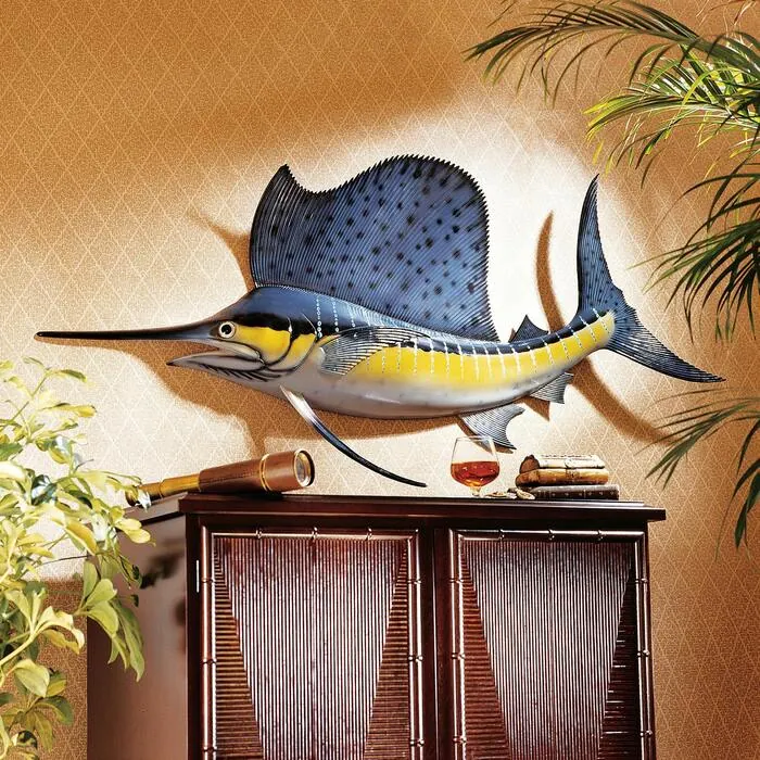 Just like those caught off the shores of Key West, our sailfish is trophy-sized - 4-feet long from sword to fin! Crafted in designer resin and hand painted in deep greens and stunning blues; so fresh they seem plucked right from the sea. This majestic trophy makes a unique accent for your home, office or study. 48"Wx3"Dx22"H. 4 lbs.