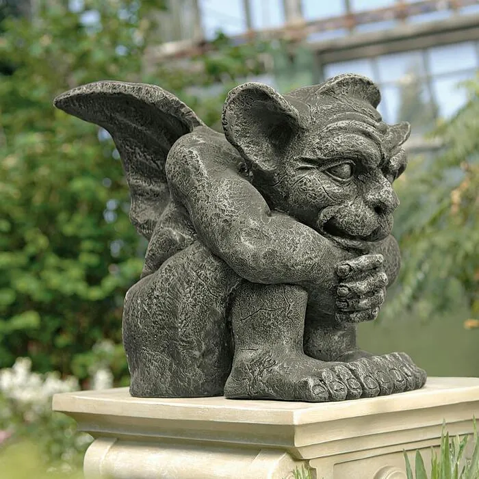 Own a classic! A true purebred, Emmett the Gargoyle boasts lineage as one of the original Medieval creatures that pensively perched from European rooftop and turret. Our historic, muscular fellow is cast in quality designer resin with an aged and weathered grey stone finish for true authenticity. He is available only at Design Toscano! 10"Wx10"Dx10½"H. 6 lbs.