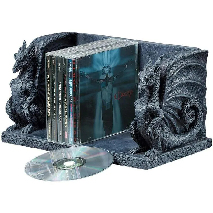 Dragons despise clutter! Whether you ask these fierce dragons to guard your favorite CDs or books, they'll display and organize any collection quite imaginatively. Intricately sculpted in Gothic style and cast in designer resin. 10½"Wx6"Dx6"H. 5 lbs.