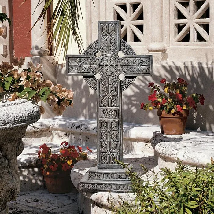 With intricate Celtic knot work on its base and cross, this classic icon continues the rich tradition of the spiritual lives of people who have sought holiness for thousands of years. At more than two feet tall, the Bannockburn Cross is exquisitely sculpted, then cast in quality designer resin with a Gothic stone finish to lend its own mysticism to home or garden. 9½"Wx8"Dx28"H. 8 lbs.