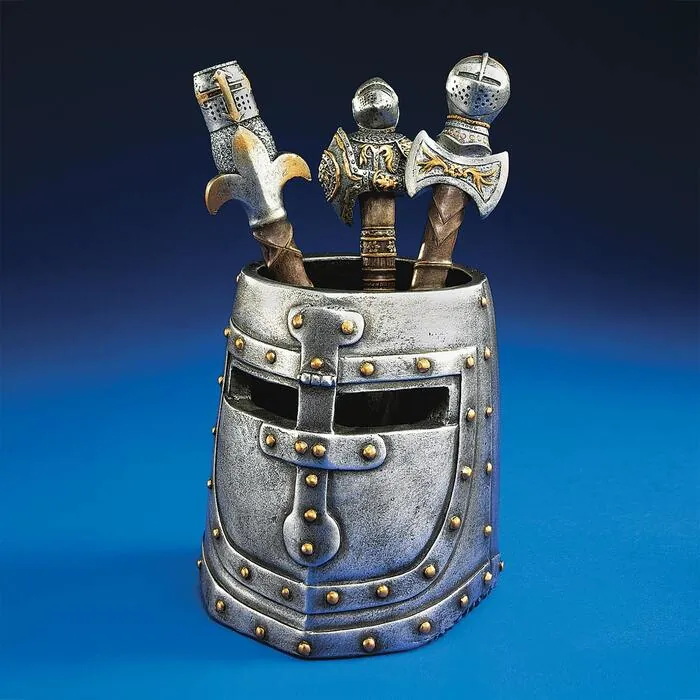 Styled after an original helm of the Holy Order who fought through the Crusades, this historic replica will conquer your prized pens and keep them close at hand. Cast in quality designer resin with a smart two-tone finish. Pens sold seperatly - see item number CL943711 and CL993664. 4½"dia.x4½"H. 2 lbs.