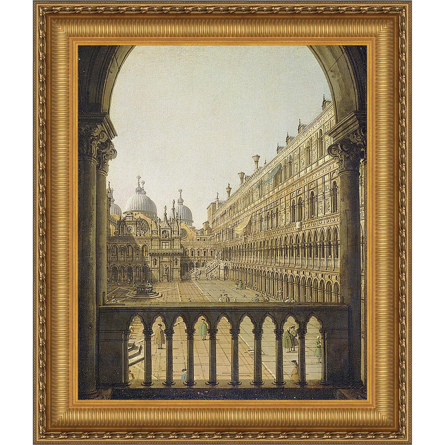 Visitors to Venice still flock to the 14th-century residence of the aristocratic elite for a glimpse of one of architecture's historic jewels. Known for his Venetian scenes, Canaletto (as the artist was also known) heightened the drama of his coveted 1756 work by framing the Doge's palace with its characteristic arches. The authentic stretched canvas replica painting captures the original work's texture, depth of color, and even its subtle brushstrokes, which are applied by hand exclusively for Design Toscano. Our replica 4.375" wide, European style, bright gold-toned, ribbed frame is cast in quality designer resin with an acanthus leaf and floret border that draws the eye toward the beautiful image. Proudly printed and framed in the USA using imported molding. Small: 17.25"Wx19.25"H framed (9"Wx11"H image size, 4.375"W frame), 5 lbs.