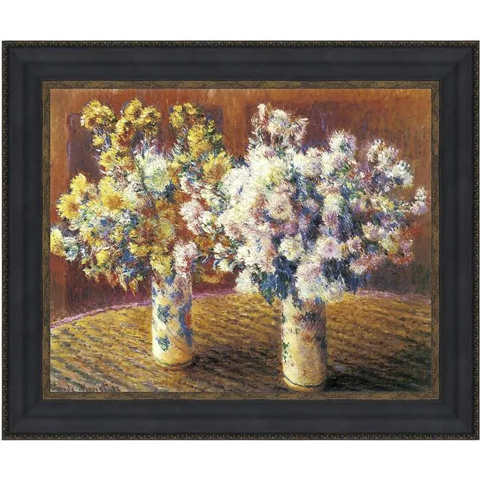 Two tall, slender vases of Art Nouveau design anchor the delightful composition featuring one of Monet's true loves, his flowers. For Impressionist painters of this period, still-life paintings represented a very marketable commodity and Monet's are among the most beautiful of their time. The authentic stretched canvas replica painting captures the original work's texture, depth of color, and even its subtle brushstrokes, which are applied by hand exclusively for Design Toscano. Our replica 3.125" wide, European style frame is cast in quality designer resin in a deep ebony hue highlighted by a faux mat and a classic, understated border in an antique gold finish. Proudly printed and framed in the USA using imported molding. Grande: 46.25"Wx37.75"H framed (40.5"Wx32"H image size, 3.125"W frame), 11 lbs.