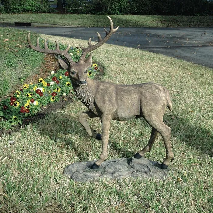 With this Toscano exclusive, the privilege of a visit from a majestic six-point buck isn't confined to the tradition of grand European landscapes! The quintessential garden piece, our amazingly accurate investment in garden art stands four-feet-long and over a yard tall, complete with an enviable rack of antlers. The artist has sculpted nature's details with realistic texture, and then cast them in quality designer resin and hand-painted them for stunning realism. Arrives in 4 pieces.