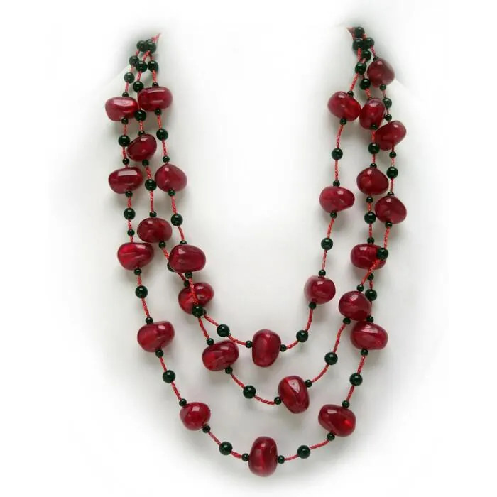 Rich crimson and ebony dance in this elegant beaded necklace embraced by a silver metal clasp. Complementary wire-drop earrings complete our stunning ensemble. Necklace: 24"L with a 2½" extender. Earrings: 1" Drop