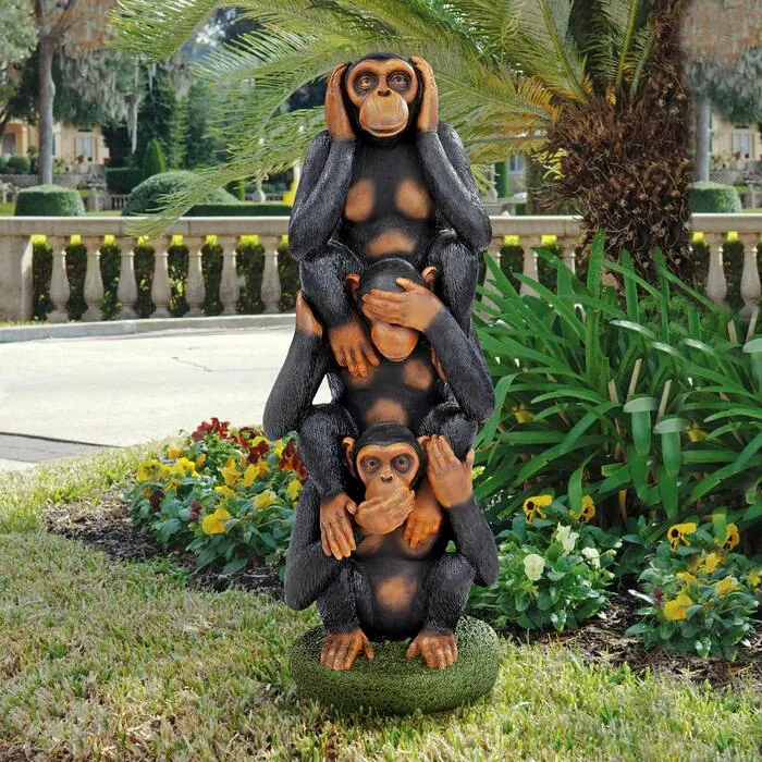 The "three truths of man" are now as large as life! As a garden centerpiece or an office statement, our playful primates are serious when they proclaim "no monkey business!" Our life-size, nearly four-foot-tall monkey sculpture classic is cast in quality designer resin and hand-painted in natural tones. Another Toscano-exclusive monkey figurine sculpture! 13"Wx12"Dx38½"H. 20 lbs.