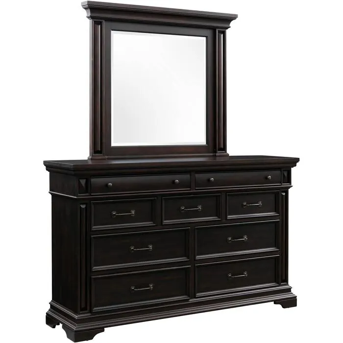 At once subtle and bold, the dark brown Stamford collection boasts elegant molding and nickel finished hardware. With features like a convenient outlet in the nightstand, English dovetail drawers and an abundance of space, this collection is both classic design and functionality.