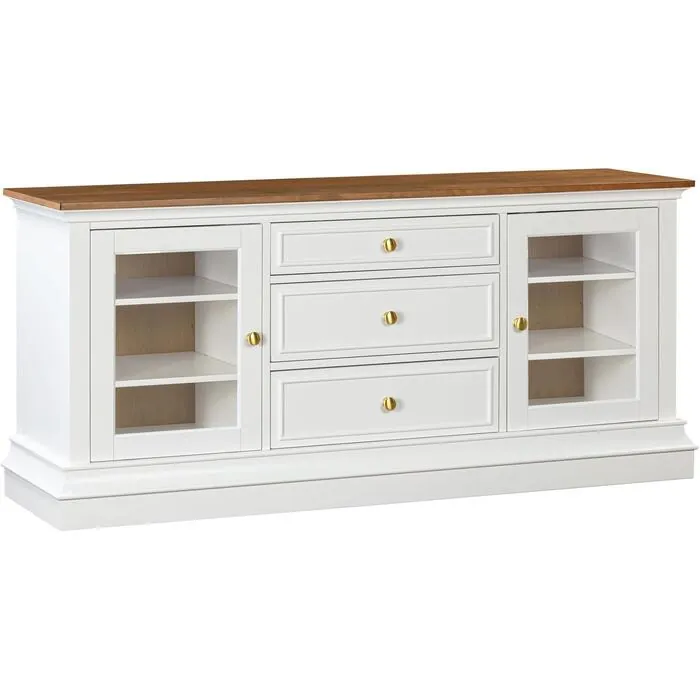 Introducing the Hudson White TV Console, the embodiment of traditional elegance and modern functionality. Crafted with the finest materials and attention to detail, this console is the perfect addition to any living room. Available in 4 beautiful finishes and featuring two hardware finish options, a drop-front drawer, adjustable/removable shelving, and wire-management cutouts to keep all your cords tidy, this piece is functional as well as beautiful. The Hudson White TV Console is the perfect centerpiece for your entertainment space, creating a warm and inviting atmosphere. Invest in a piece that will last a lifetime and become a cherished part of your home. With its classic style and modern functionality, the Hudson White TV Console is the perfect choice for any home.