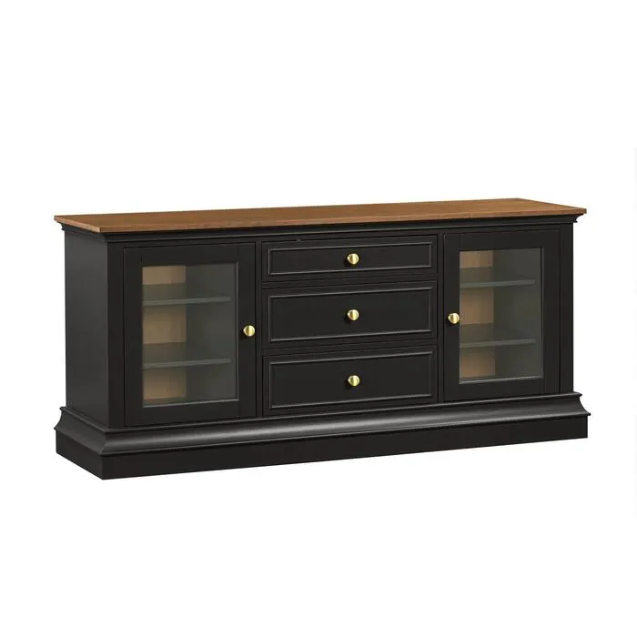 Introducing the Hudson Charcoal TV Console, the embodiment of traditional elegance and modern functionality. Crafted with the finest materials and attention to detail, this console is the perfect addition to any living room. Available in 4 beautiful finishes and featuring two hardware finish options, a drop-front drawer, adjustable/removable shelving, and wire-management cutouts to keep all your cords tidy, this piece is functional as well as beautiful. The Hudson Charcoal TV Console is the perfect centerpiece for your entertainment space, creating a warm and inviting atmosphere. Invest in a piece that will last a lifetime and become a cherished part of your home. With its classic style and modern functionality, the Hudson Charcoal TV Console is the perfect choice for any home.