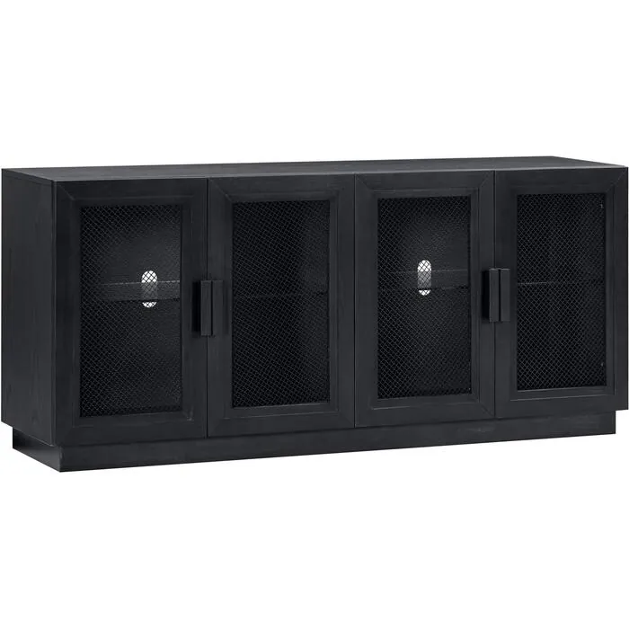The Nolan Black Wood Console is a stunning piece of furniture with a sleek, contemporary design featuring a black wood finish and black metal mesh doors. With ample storage space and a convenient cable management system, the Nolan Console is as practical as it is stylish. This console is the missing piece you've been searching for, the one that ties your home together and makes everything feel just a little bit more complete. The Nolan Black Wood Console is a beautiful and practical addition to your space that you won't be able to help but fall in love with.
