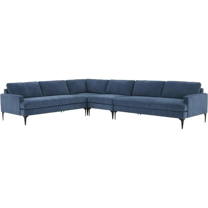 Tov Furniture Serena Blue Velvet Large L-Sectional with Black Legs REN-L05120-BLK-SEC1