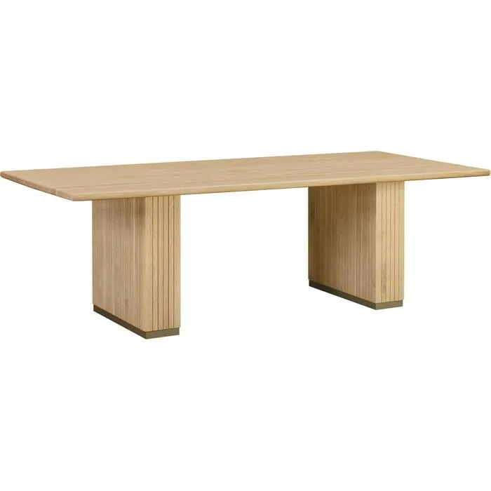 Durable and dreamy, the Chelsea table is a classic in every way. Natural Oak elicits vacation vibes while the brass base gives it that modest glow-up. Available in rectangle or round.