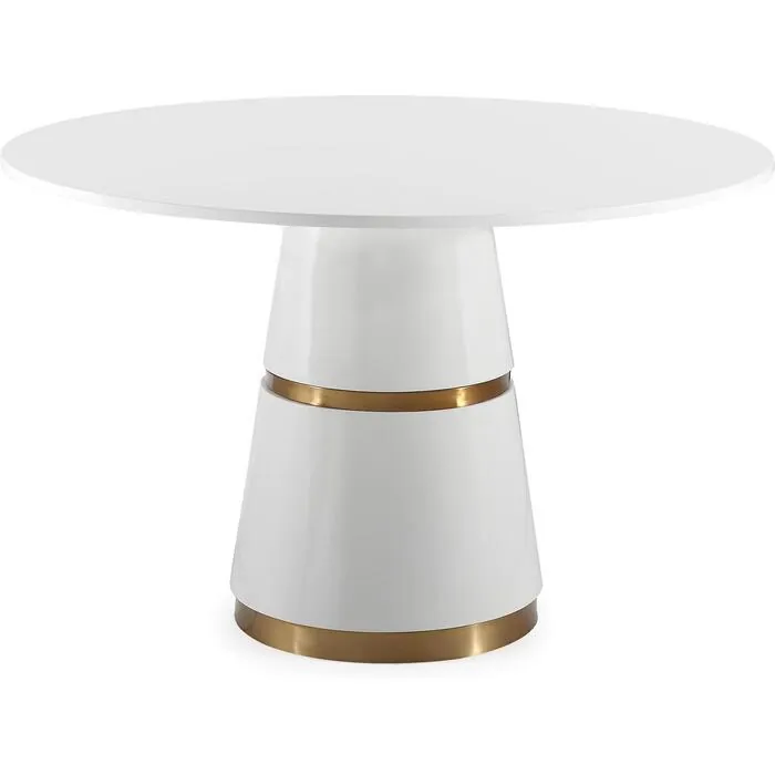 Our love for Hollywood Glam has inspired us to design the statement piece that is, the Rosa dining table. Featuring a conical base and round table top, its clean white finish is beautifully complimented with two gold stripes. Up to four people can dine comfortably on this stunning table.
