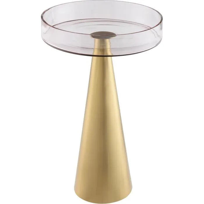 Compliment your space with the modern and stylish Alo side tables. Featuring a transparent pink glass perched upon a gold conical base, this table is an instant eye-catcher. Available in 2 sizes, it shines as a single table or as a set.