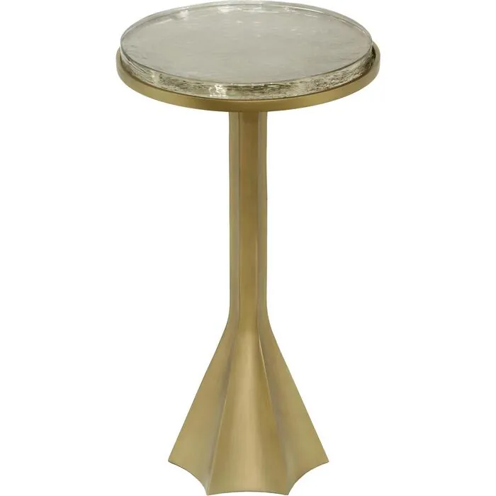 Elevate your living space with the Gabrielle Round Side Table, where elegance meets artistry! The brass-colored aluminum base adds a touch of timeless sophistication and the swelled base adds a touch of whimsey and visual interest. The glass table top is sturdy and durable, made to support your snacks, beverage, or decor piece and last a lifetime.