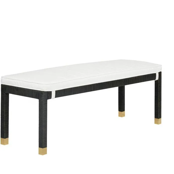 The Amara Bench is the epitome of relaxed California vibes and effortless style. With its wrapped rattan design and brass-capped legs, this bench exudes a laid-back coastal charm. Complete with a comfy cushion, it's the perfect piece for the foot of your bed, extra seating in your dining room or an entryway! Available in Natural or Charcoal.