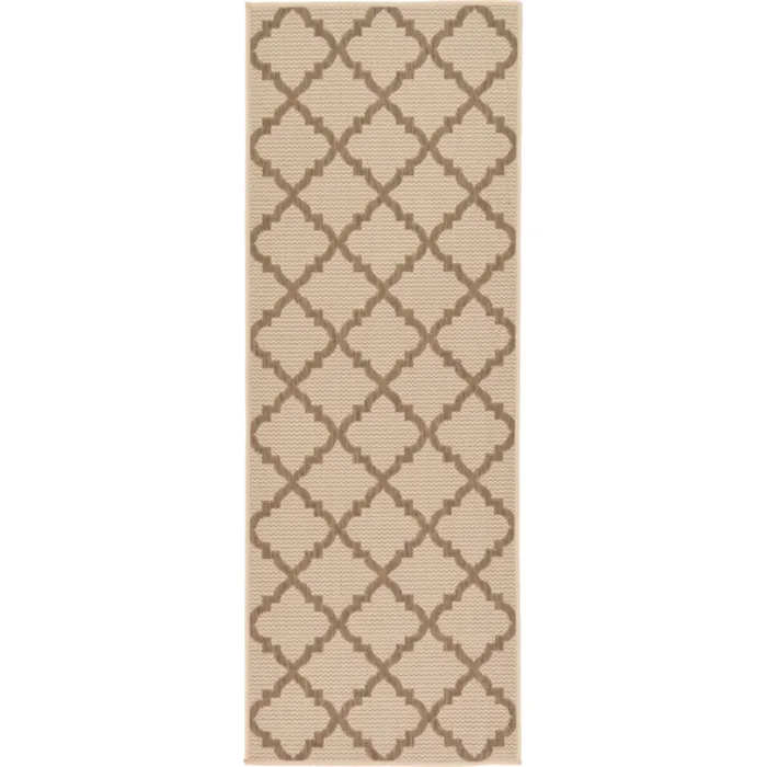Unique Loom Outdoor Raised Trellis Rug in Beige Runner 3126700