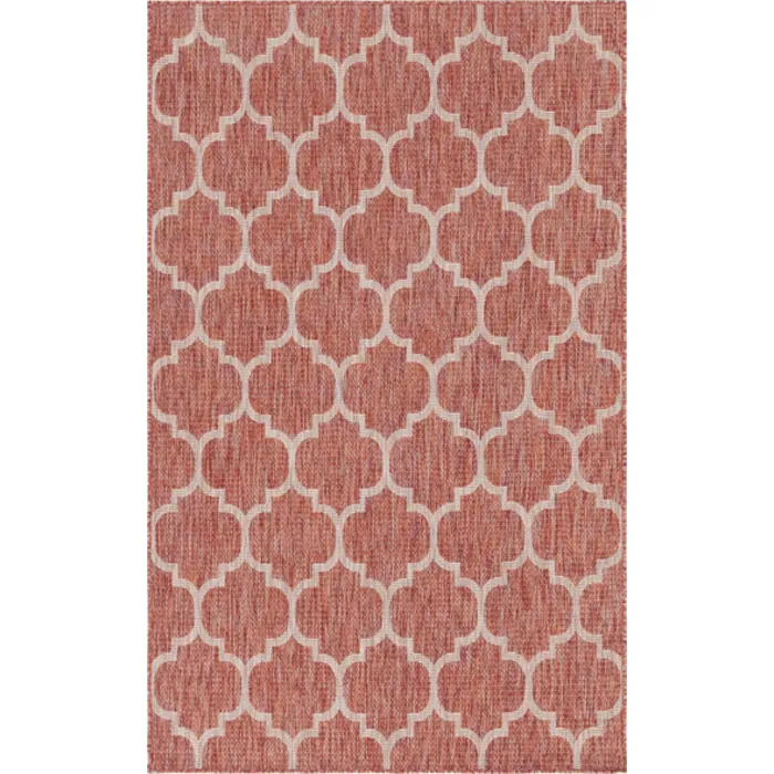 Unique Loom Outdoor Trellis Rug in Rust Red Rectangular 3128959