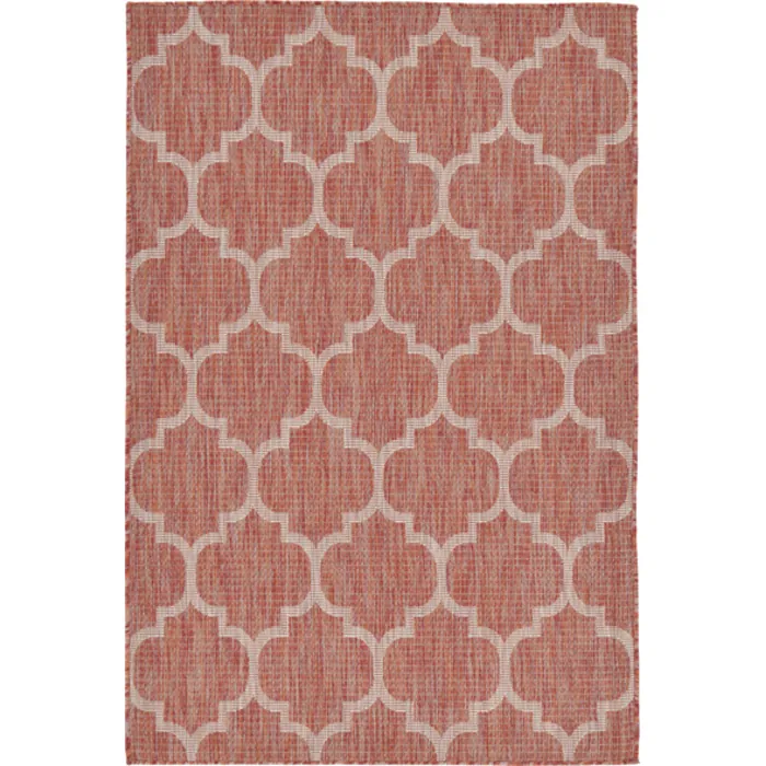 Unique Loom Outdoor Trellis Rug in Rust Red Rectangular 3128963