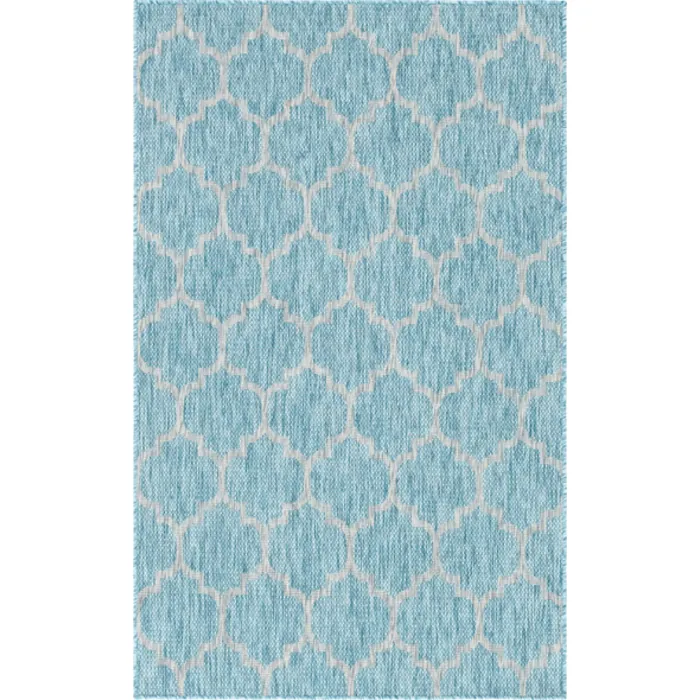 Unique Loom Outdoor Trellis Rug in Aquamarine Rectangular 3129019