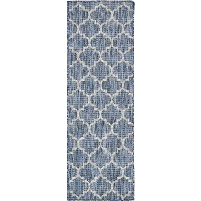 Unique Loom Outdoor Trellis Rug in Navy Blue Runner 3136825