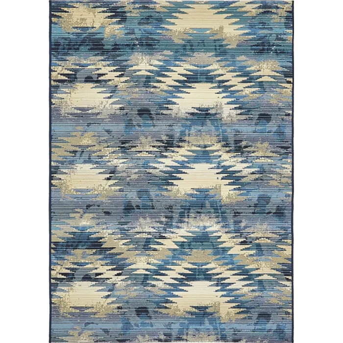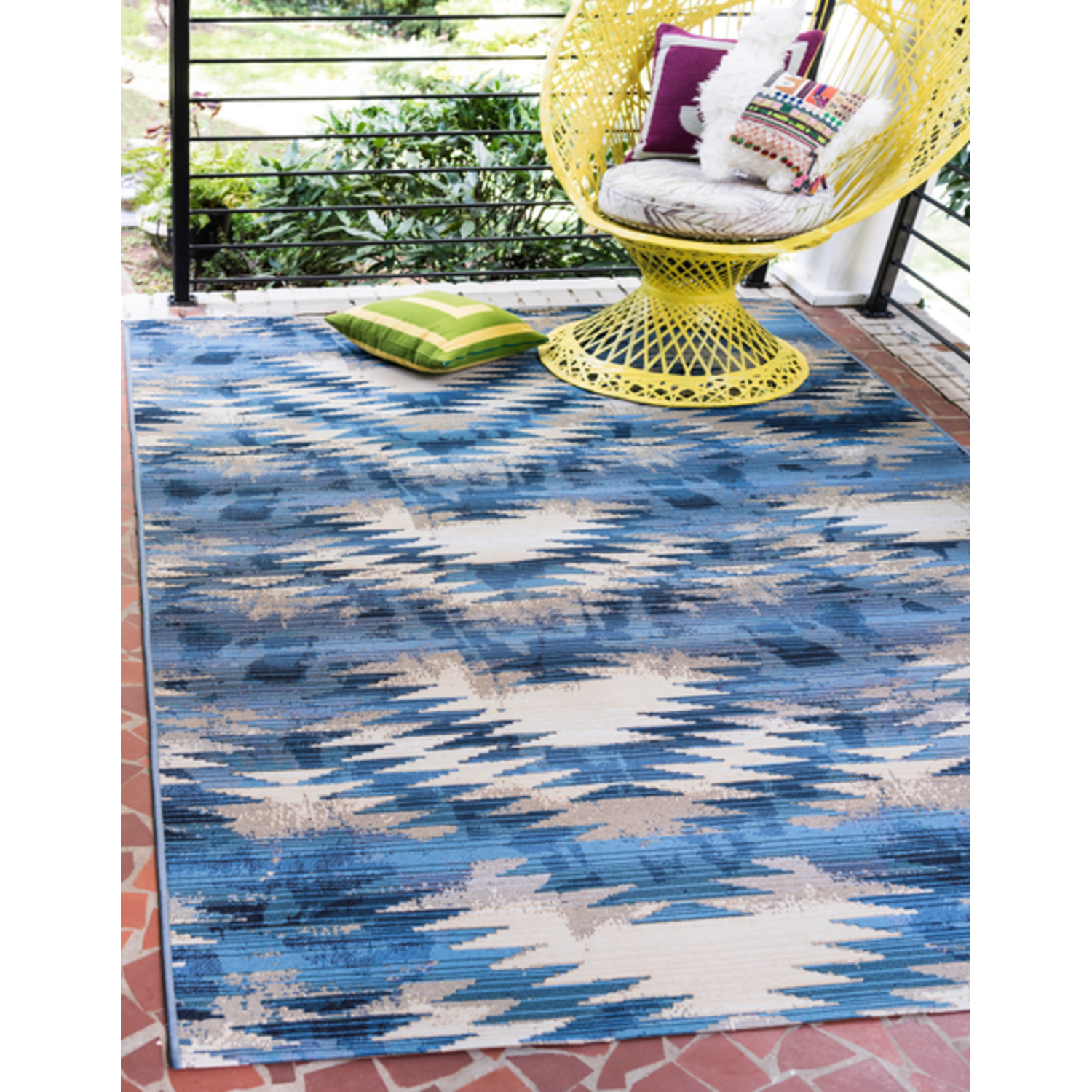 Unique Loom Outdoor Aztec Rug in Blue Rectangular 3138414