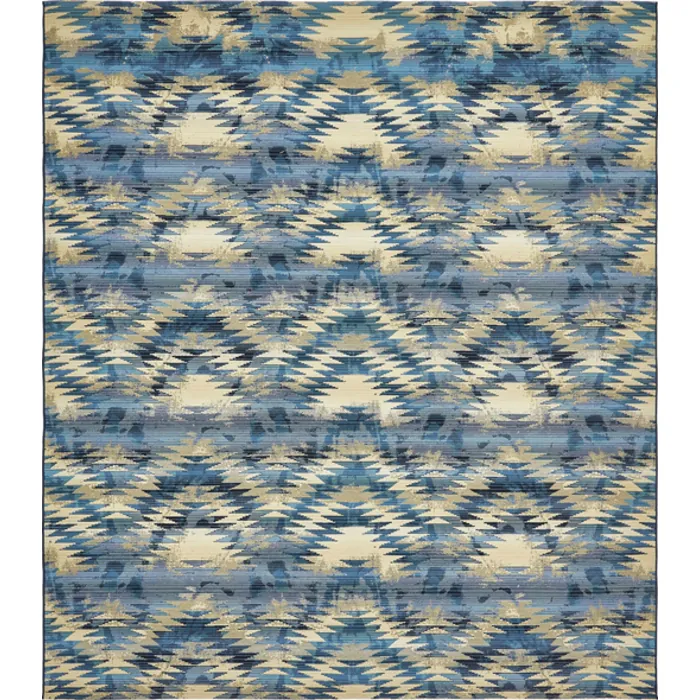 Unique Loom Outdoor Aztec Rug in Blue Rectangular 3138417