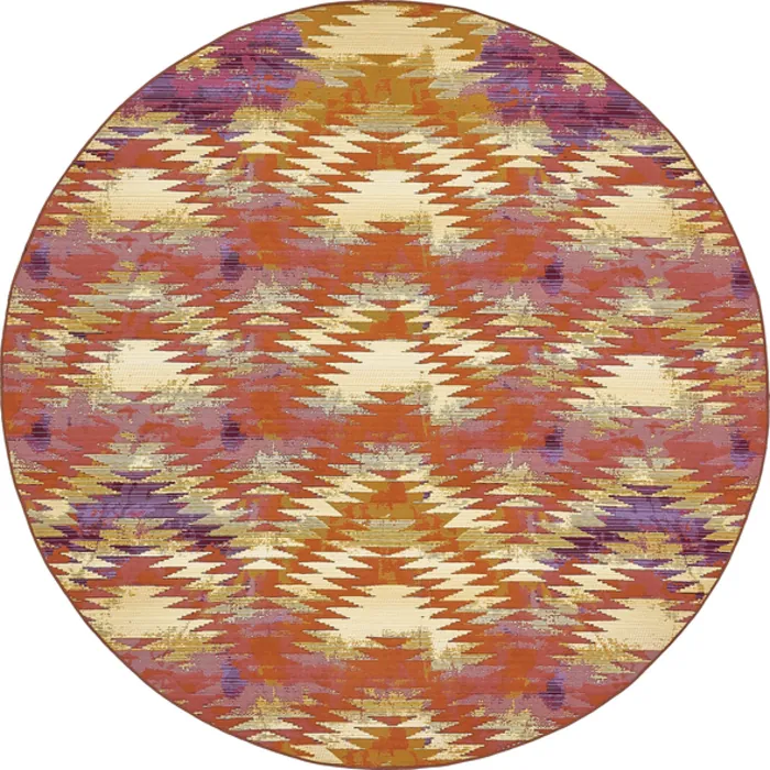Unique Loom Outdoor Aztec Rug in Red Round 3138420