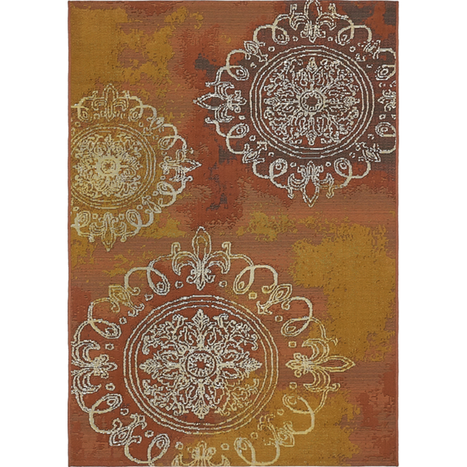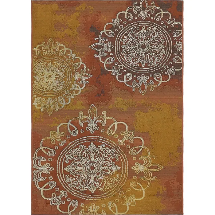 Unique Loom Outdoor Trio Rug in Rust Red Rectangular 3138609