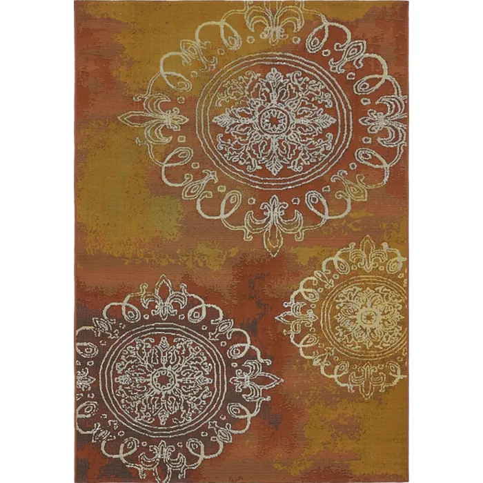 Unique Loom Outdoor Trio Rug in Rust Red Rectangular 3138610
